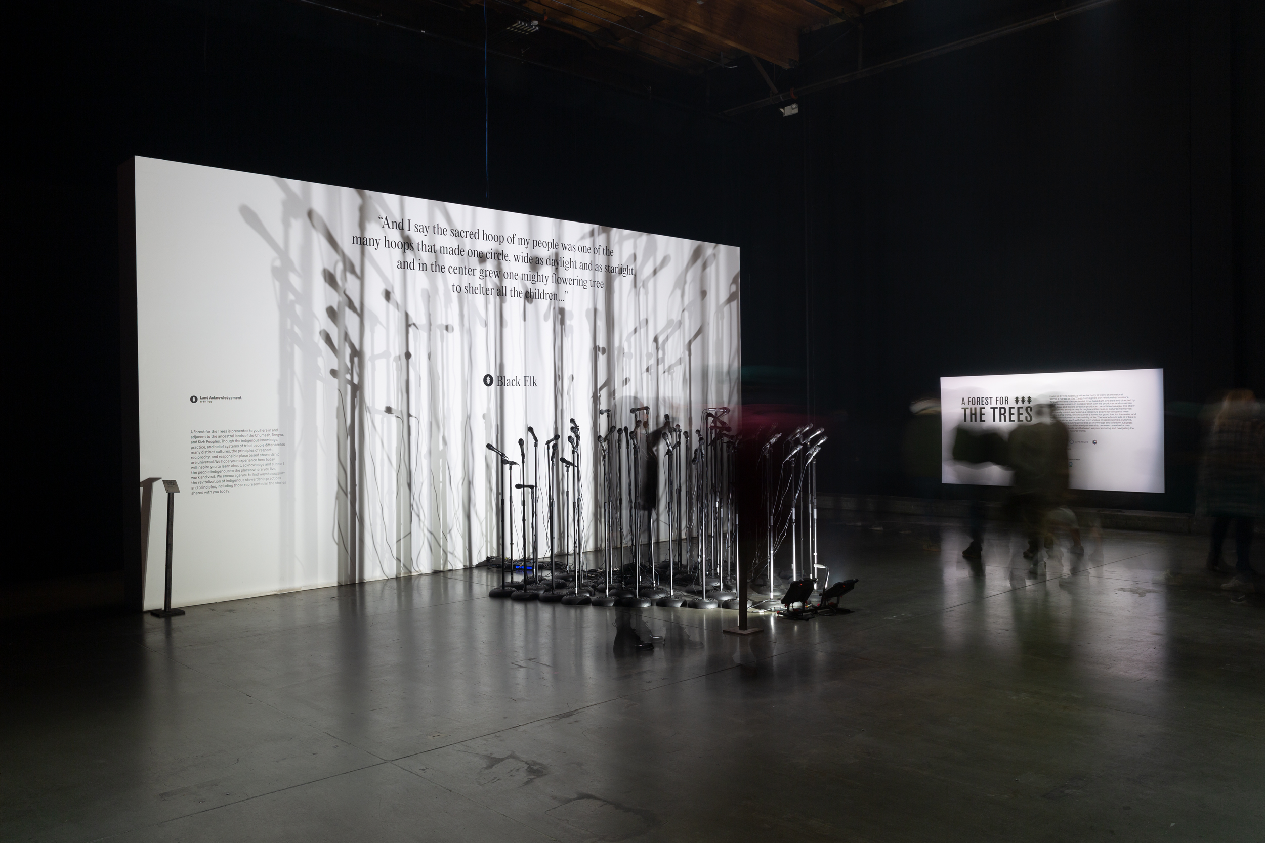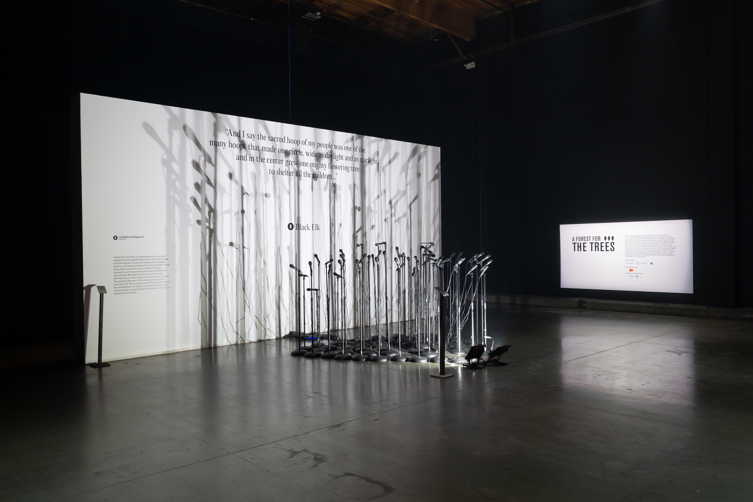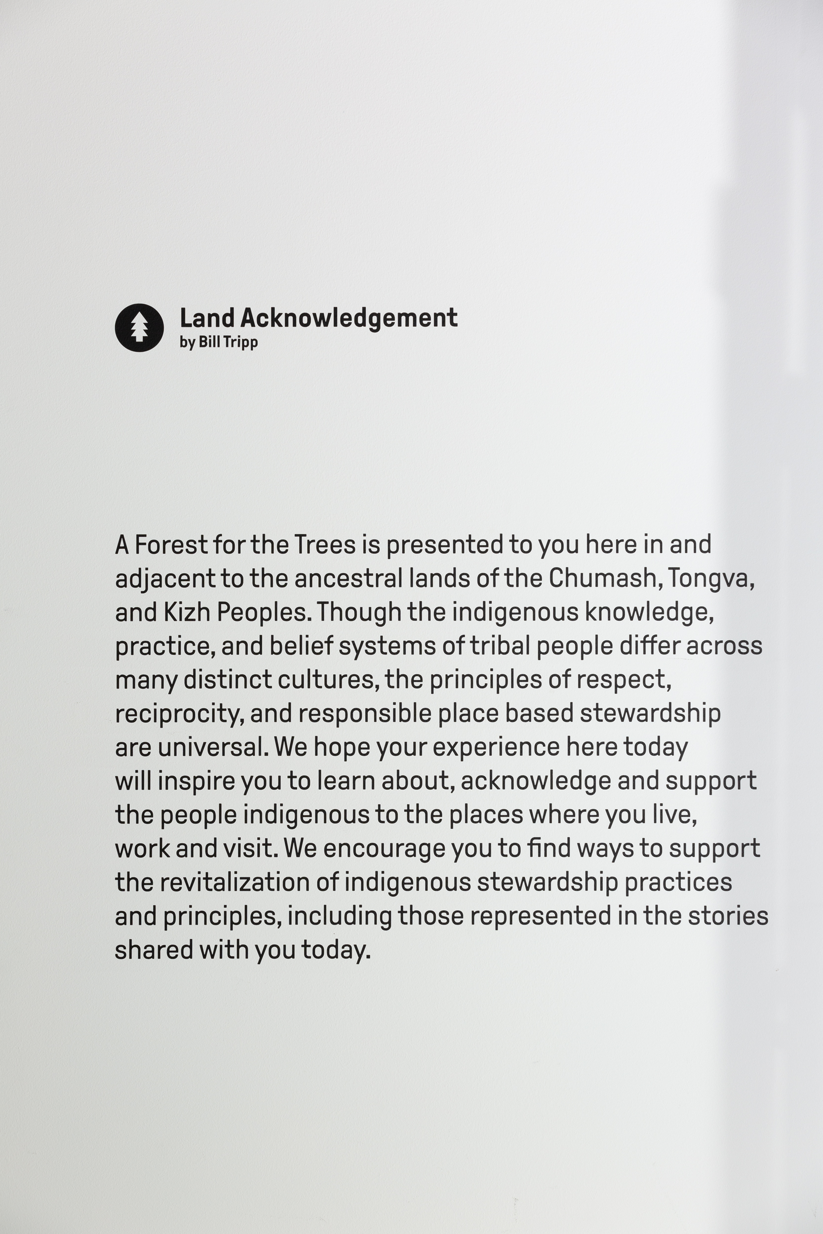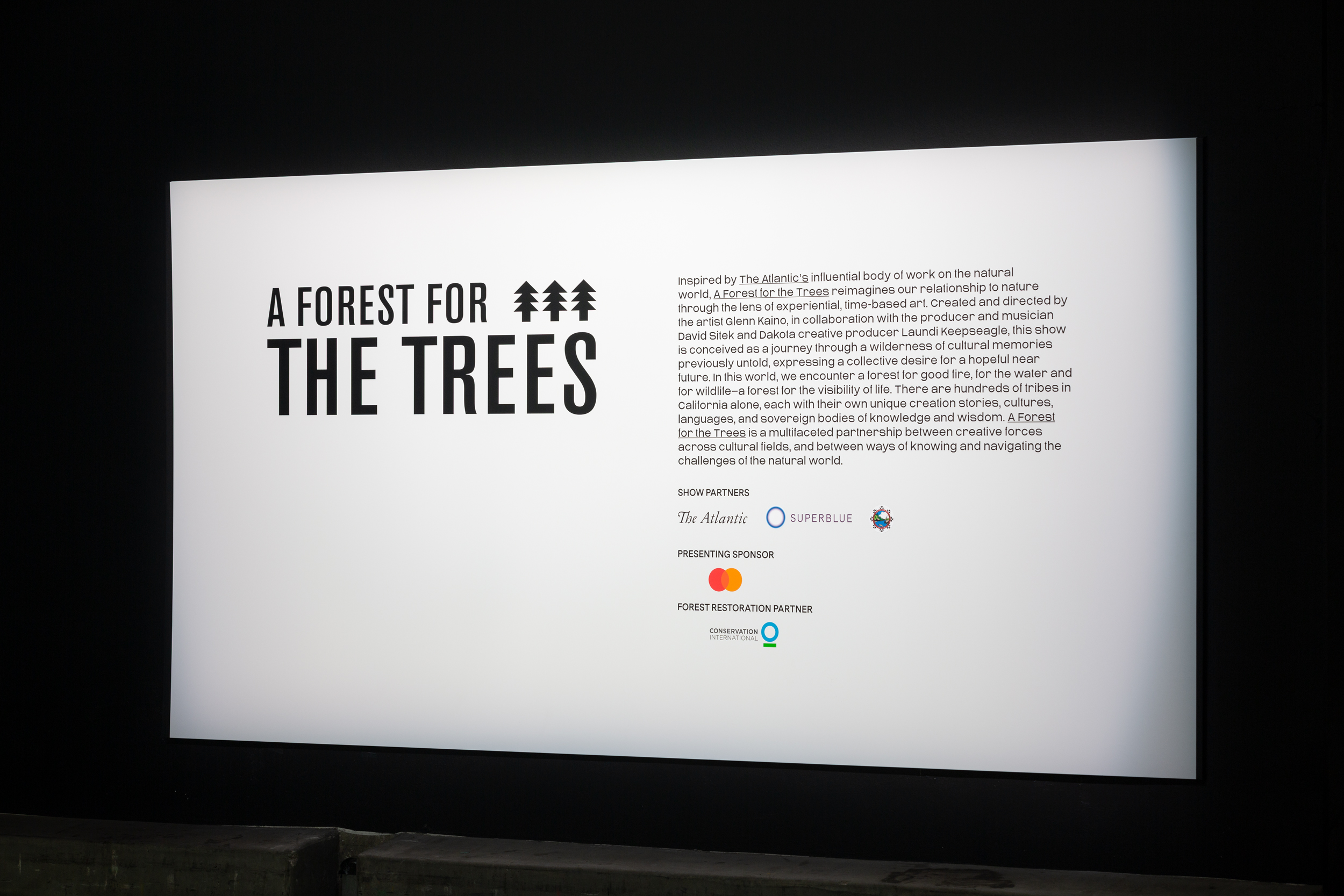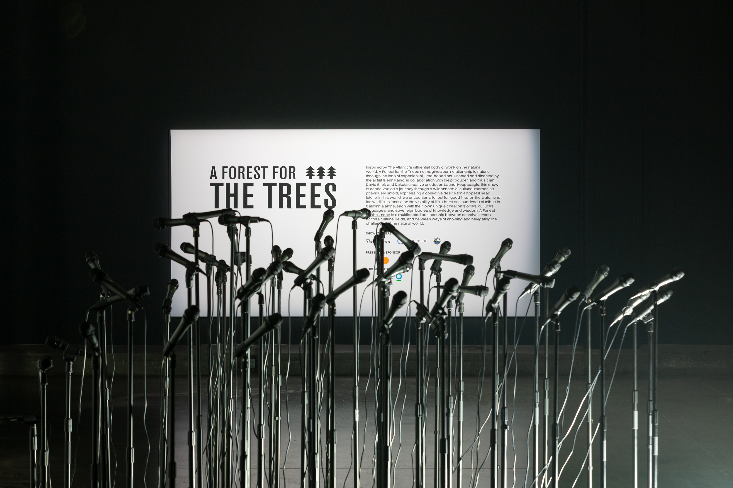 Polymode designed exhibition and navigational graphics for A Forest by the Trees, which is an immersive experience that draws the viewer in to reimagine, reconsider, and reflect on our relationship to the natural world designed by multimedia artist Glenn Kaino.