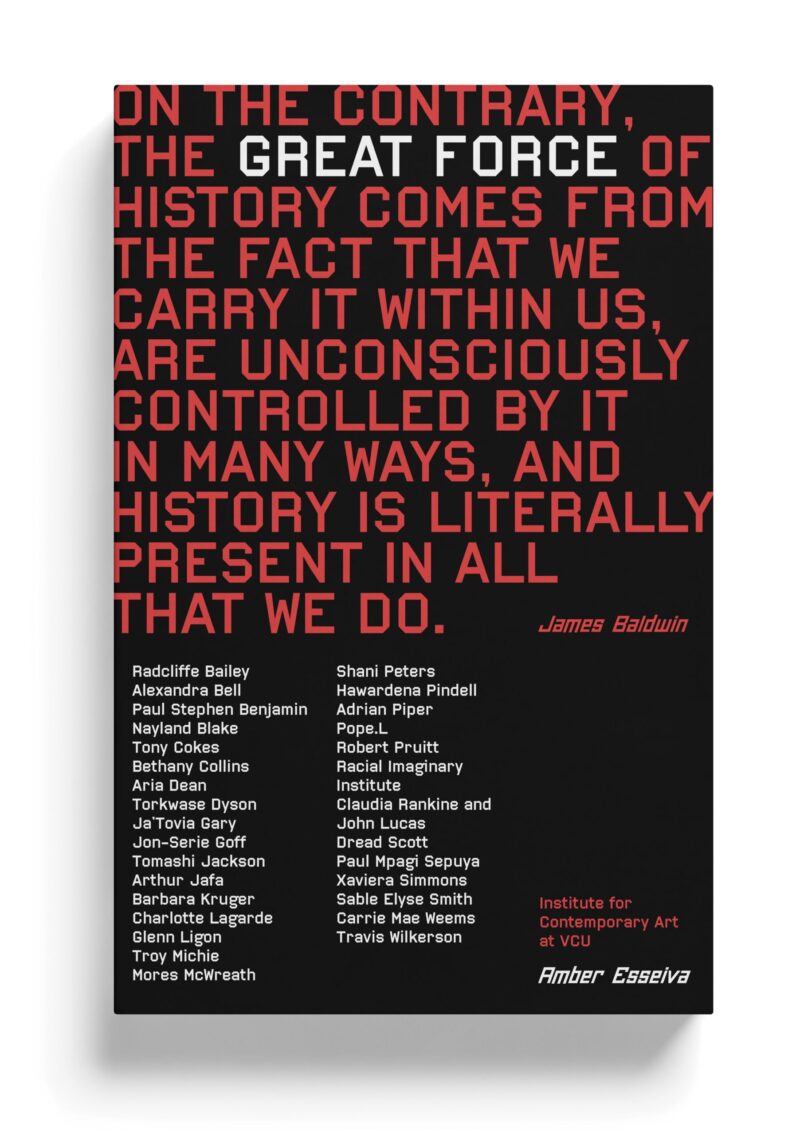 Great Force was group show of artists on view at Institute for Contemporary Art at Virginia Commonwealth University (ICA at VCU) confronting the impact of racism in America. Polymode designed the fully illustrated catalog that includes images and texts from the artists in the exhibition, new contributions from writers Nicholas Mirzoeff and Rebecca Walker, an essay by exhibition curator Amber Esseiva, historical reprints from Frederick Douglass, James Baldwin, and Nell Irvin Painter, and custom information design created by Polymode that informed the themes of the exhibition.