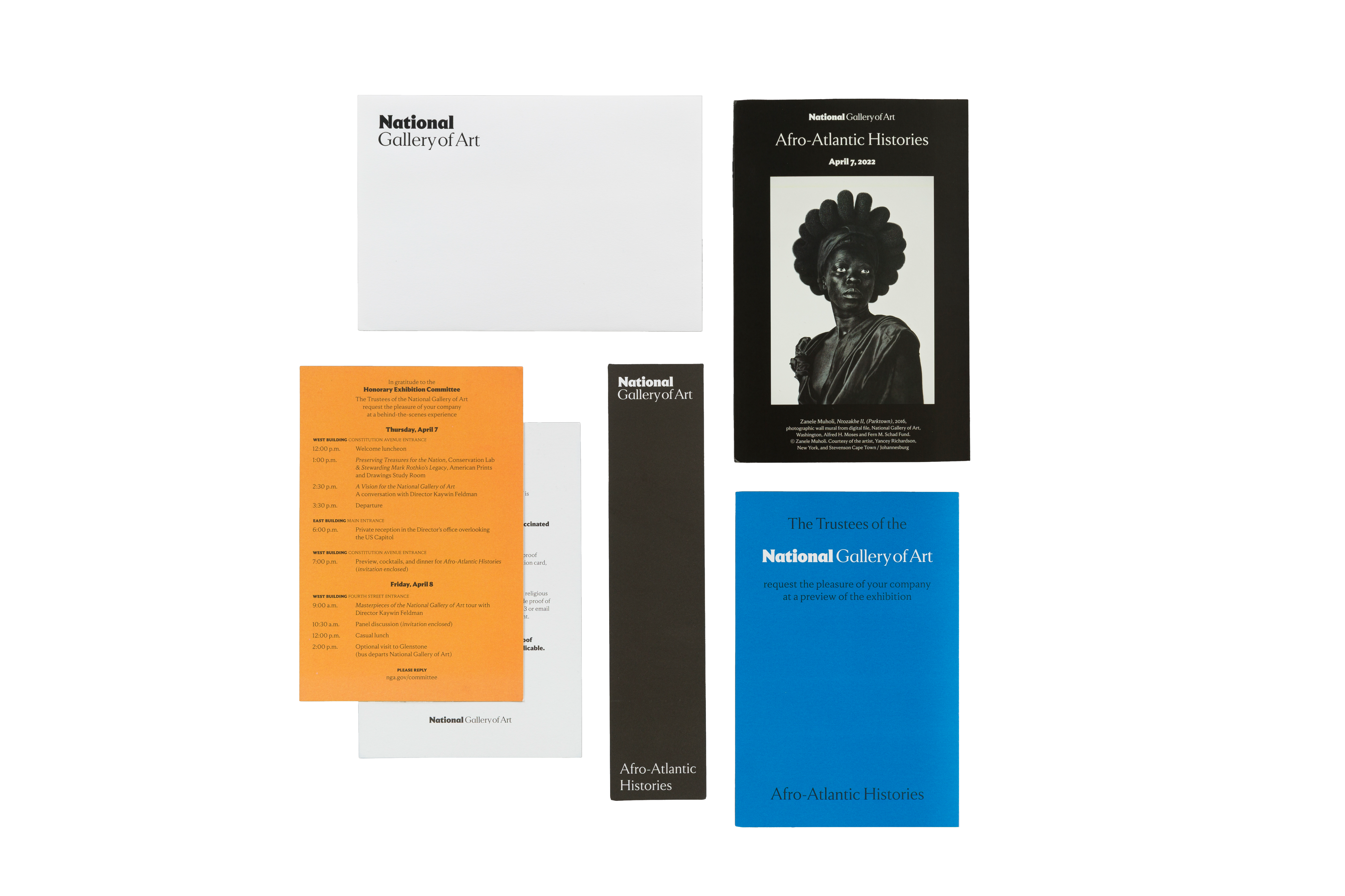 Polymode designed invitations for the trustees preview of Afro-Atlantic Histories at the National Gallery of Art in Washington, D.C.