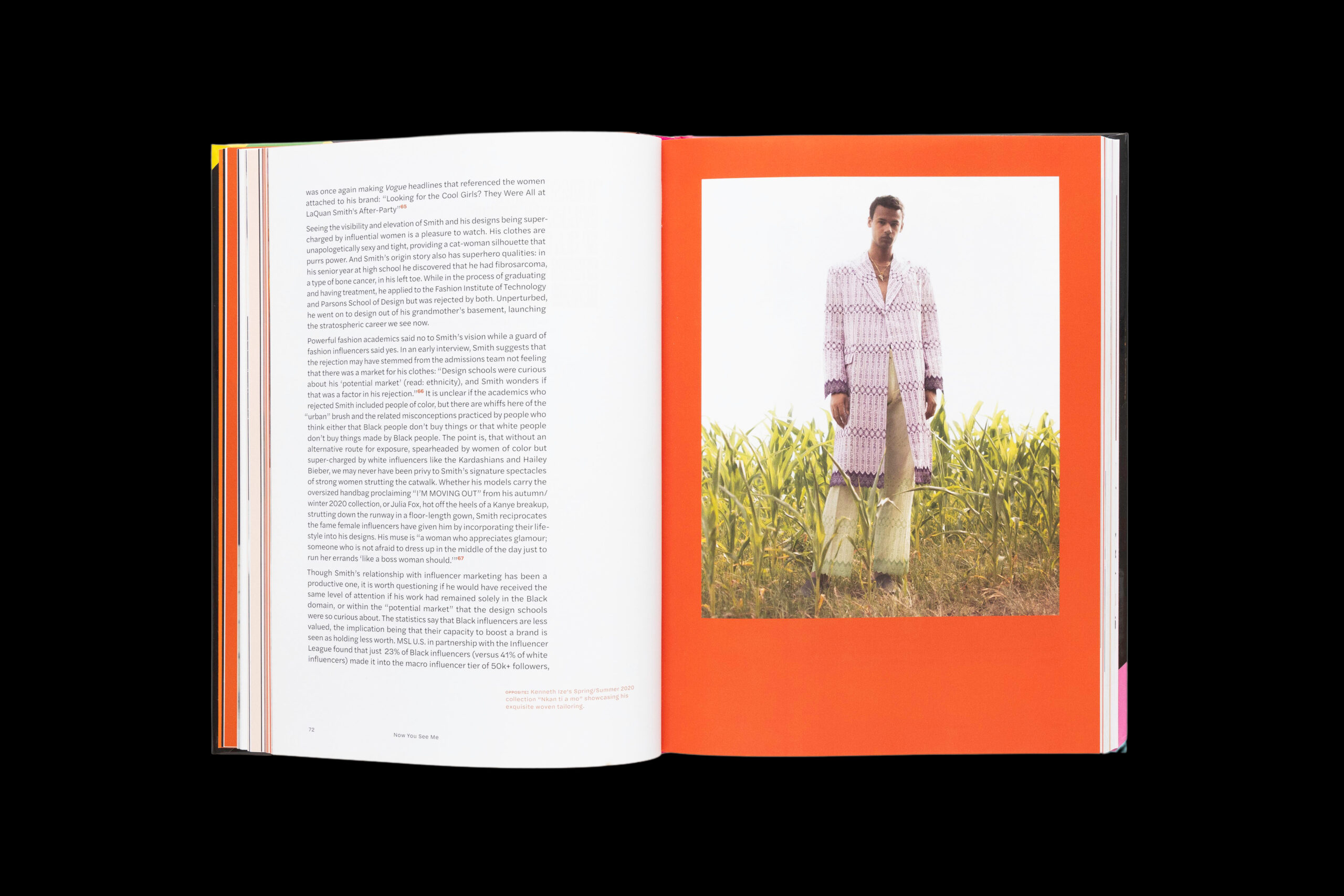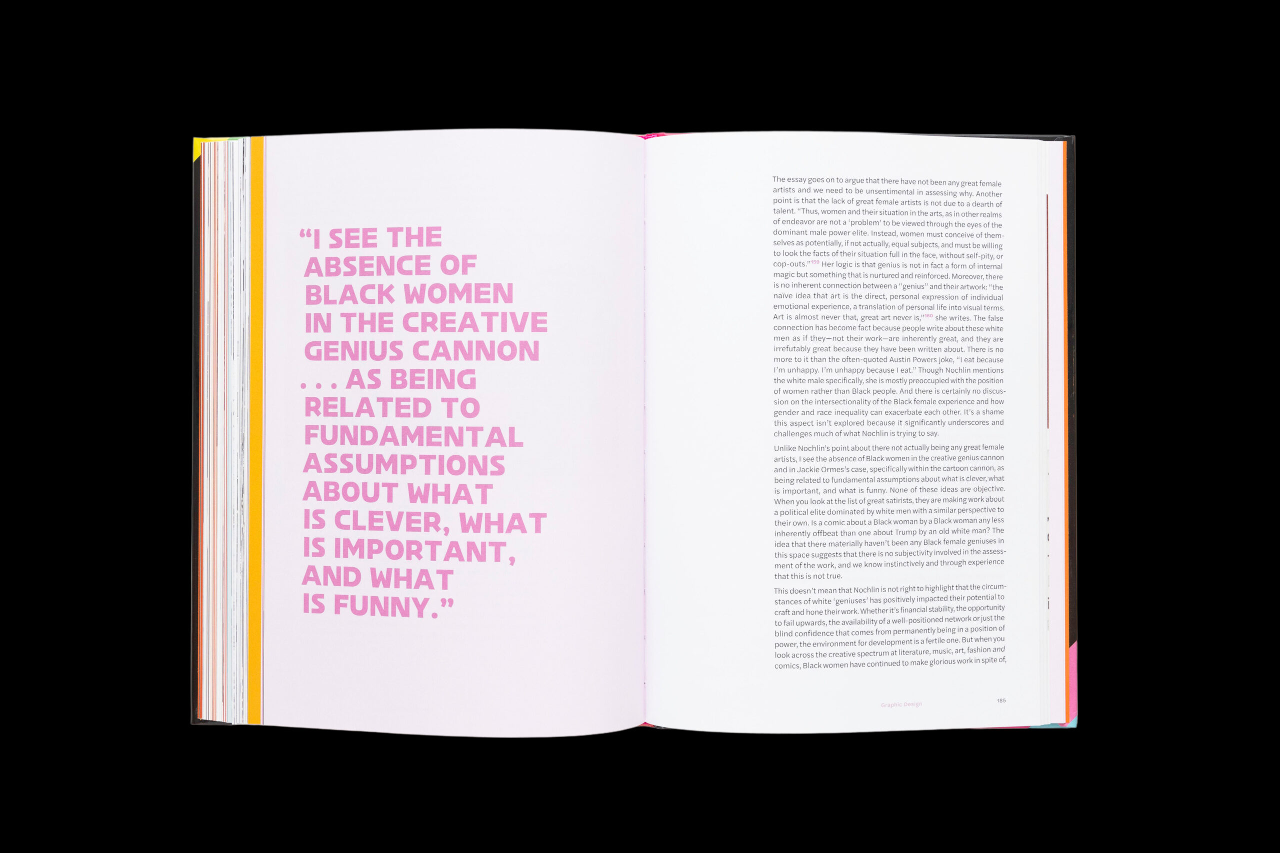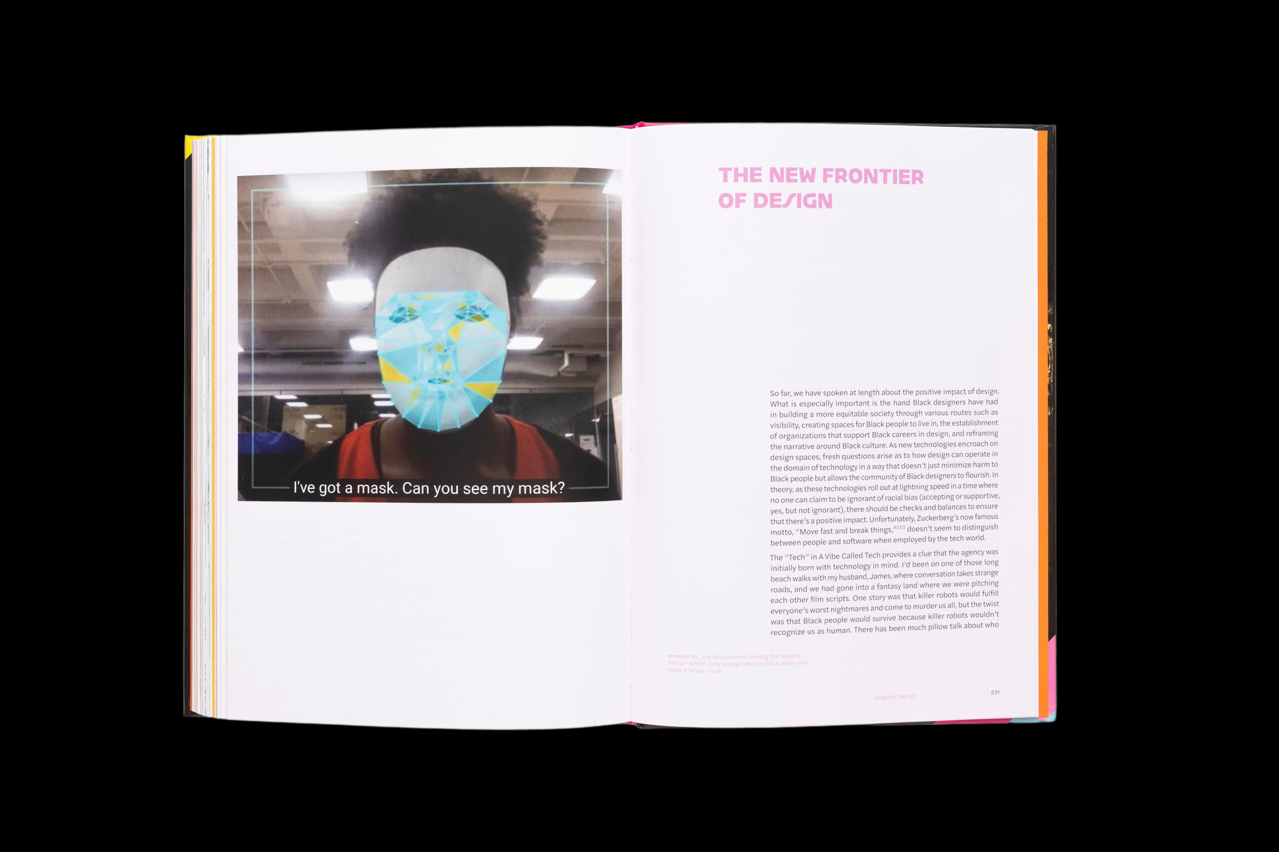 This ground-breaking book celebrates a century of work by black graphic artists, architects, and fashion designers whose art has helped define key cultural moments and movements. This vibrant and wide-ranging book, full of photographs and illustrations, aims to correct that oversight, bringing a century of Black designers and their work into focus. The book is organized into three sections focusing on Fashion, Architecture, and Graphic Design. Charlene Prempeh uses the pioneering work of key figures from the 20th and 21st centuries to explore important aspects of how Black design has been perceived within culture and society. The core design motif is representative of African fabric and cloth block colors, which are expressed boldly and vibrantly on the cover. These colors also help organize way-finding as someone flips through the pages but also draw attention to the vibrancy of Black life. To then uplift Black design excellence, the four typefaces chosen for the publication are also produced by Black designers. The title is set in Harlemecc by Jaamal Benjamin, nodding back to the Harlem Renaissance. The subheadlines and callouts are the faces: VTC Spike, VTC Tre, and The Neu Black all designed by Tré Seals; each containing and retelling an important aspect of Black history, the civil rights movement, aspects of Spike Lee’s career, and Tré’s storytelling approach to building a typeface. The body copy is set in Halyard designed by Joshua Darden Studios and acts as a thread across the sections to ground the history of Black Design.