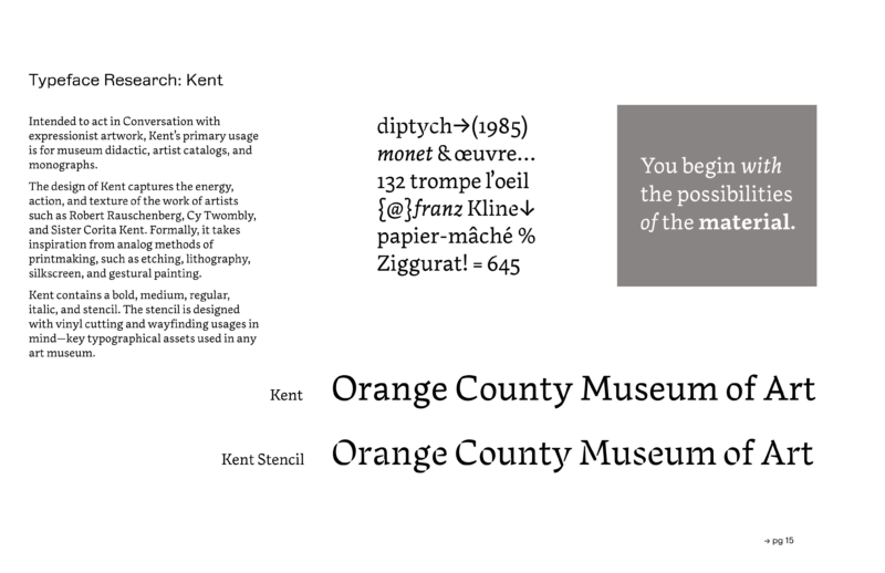 Polymode led a complete redesign of OCMA’s visual identity, brand materials, and website to welcome the museum’s new building, opening in 2022. The site, designed in collaboration with Happening Studio, features colored hues that shift throughout the day based on the current time in Orange County, CA. The typeface, Kent was designed by Jaimey Shapey.