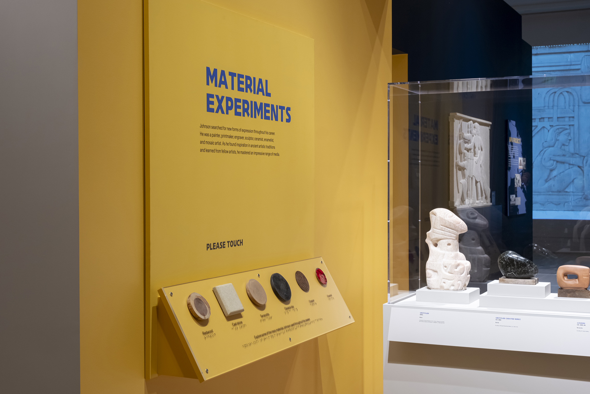 Polymode is honored to have designed the publication and exhibition graphics for the Sargent Claude Johnson show at The Huntington. For the exhibition, the studio created a color system with bright and dark blues, rich and deep naturals, and accents of bright yellow and gold that helped differentiate the bodies of work. These colors guide viewers through the exhibition, including tactile elements that include braille and 3d printing. Direct printing on painted wood was a sustainable production method for the large didactic panels. All of these visual and typographic elements were designed in tandem with the print publication.