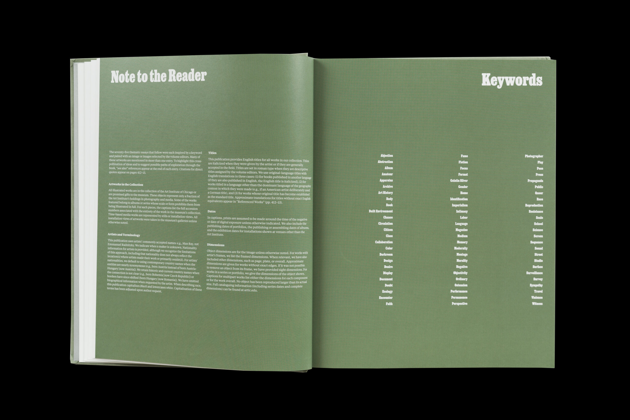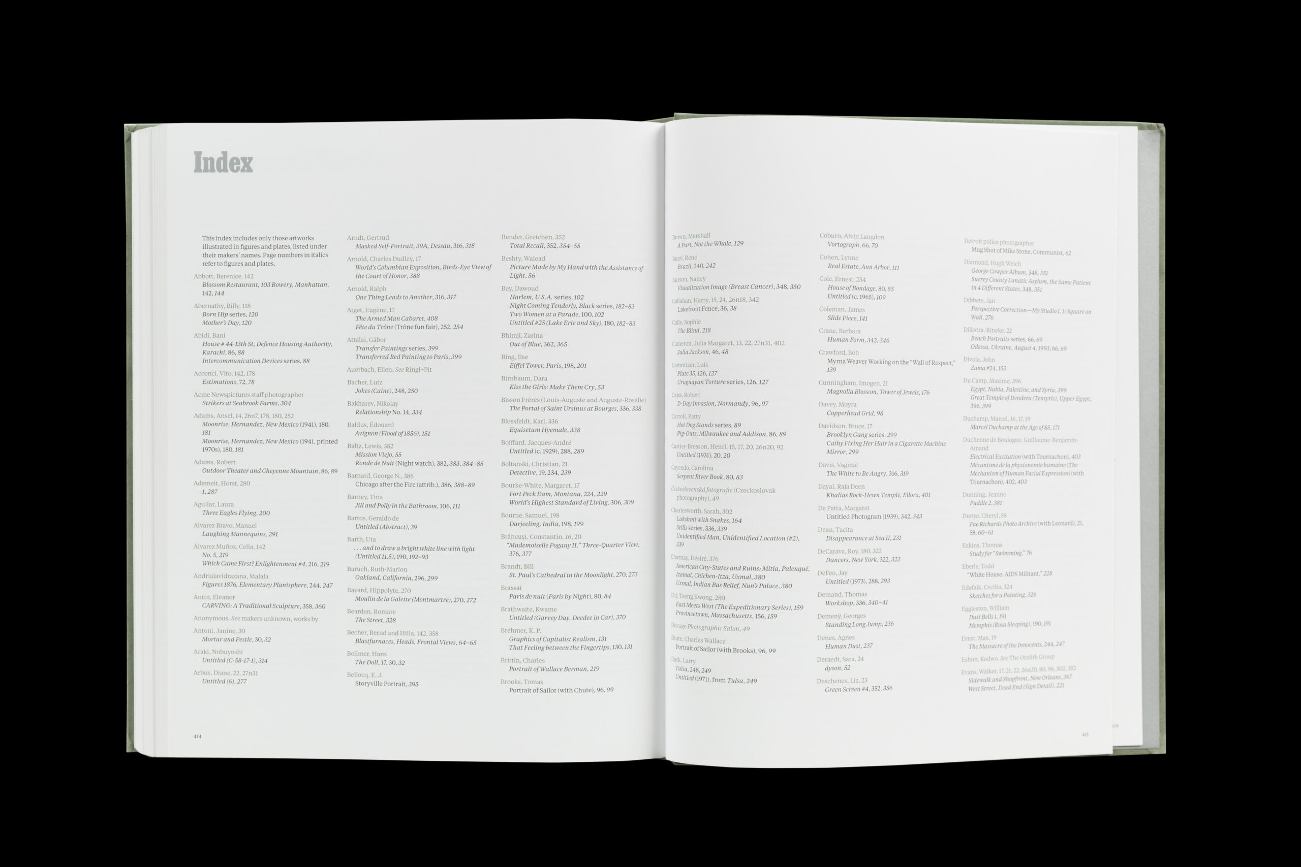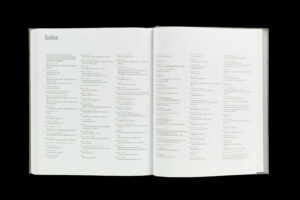 The overall design of the publication takes lessons from field guide books and archival documents, emphasizing the navigation using bold typography and a metallic spot color to grab your attention. The images take up space in an eloquent way, shifting in size and creating harmony across spreads, while also contextualizing the images with captions that sit at the same height lower on the page.