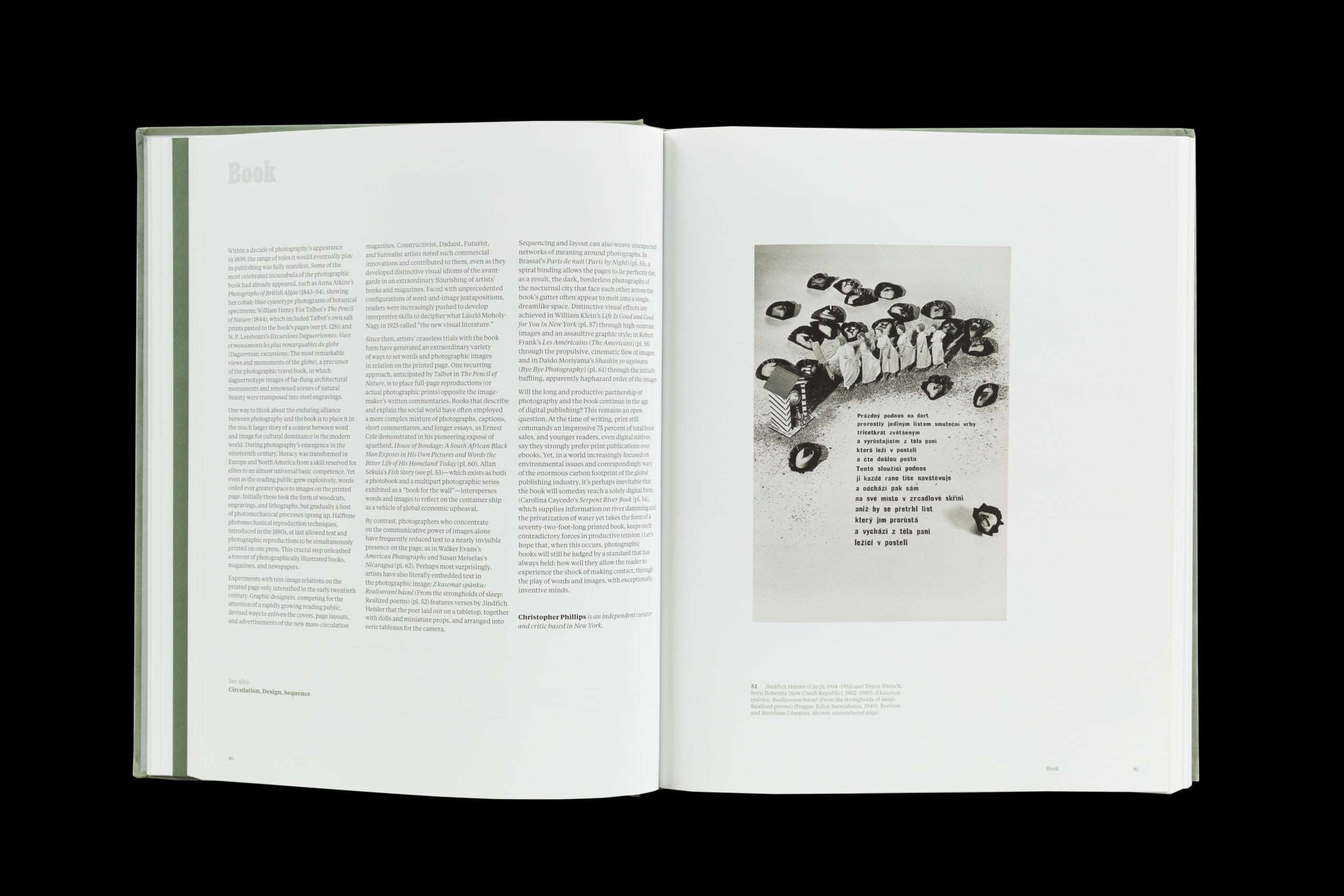 The typeface used across the publication is Job Clarendon, which pays homage to job printing that was often used in posters and flyers of letterpress printing; making the publication encompass a meeting point for the history of photographs and printing. The typeface was designed by Jonathan David Ross and Bethany Heck, where the style focuses on adaptability, flexibility in weight, bold, and daring; similar to how photographs in the field guide are represented.