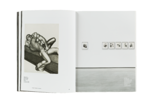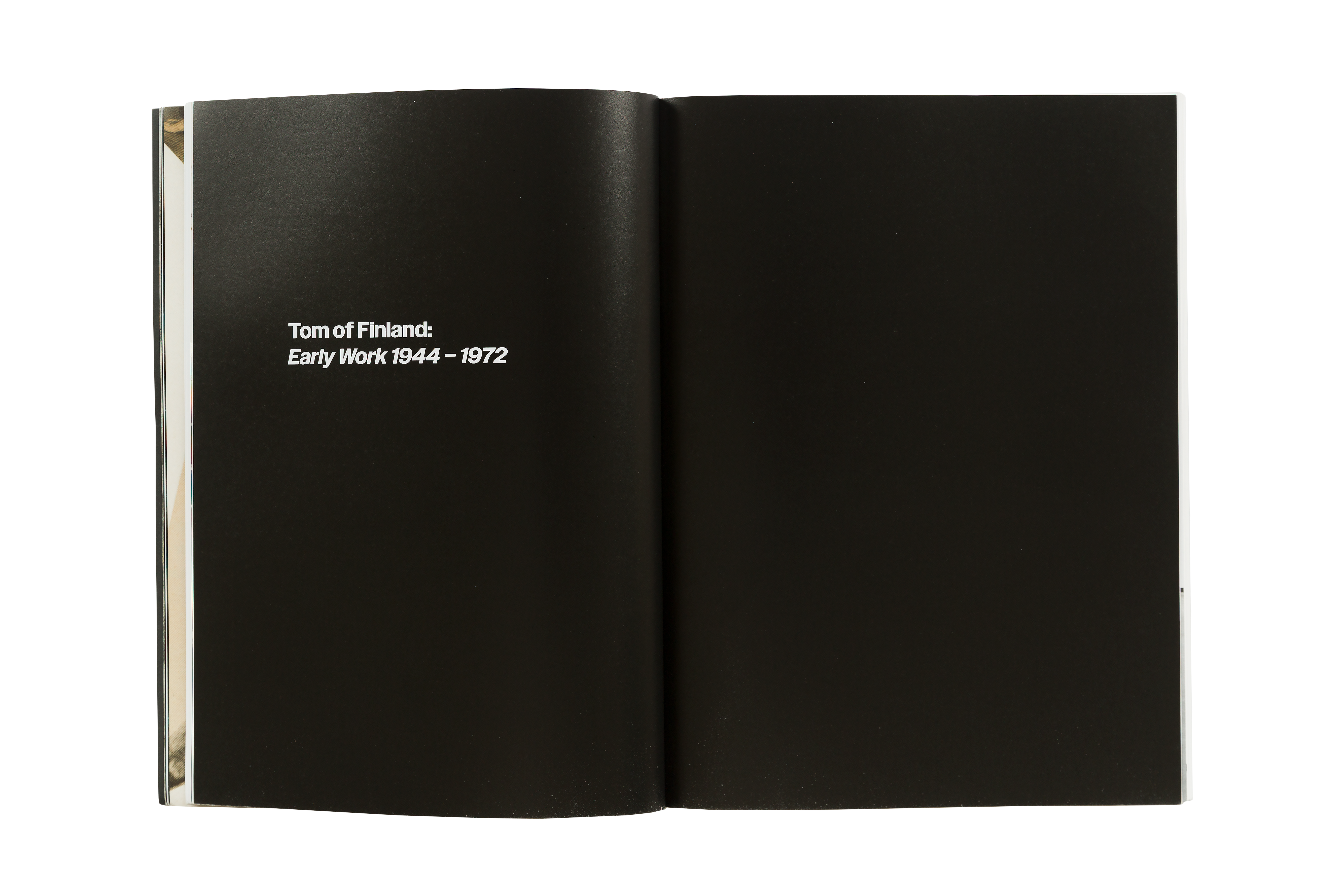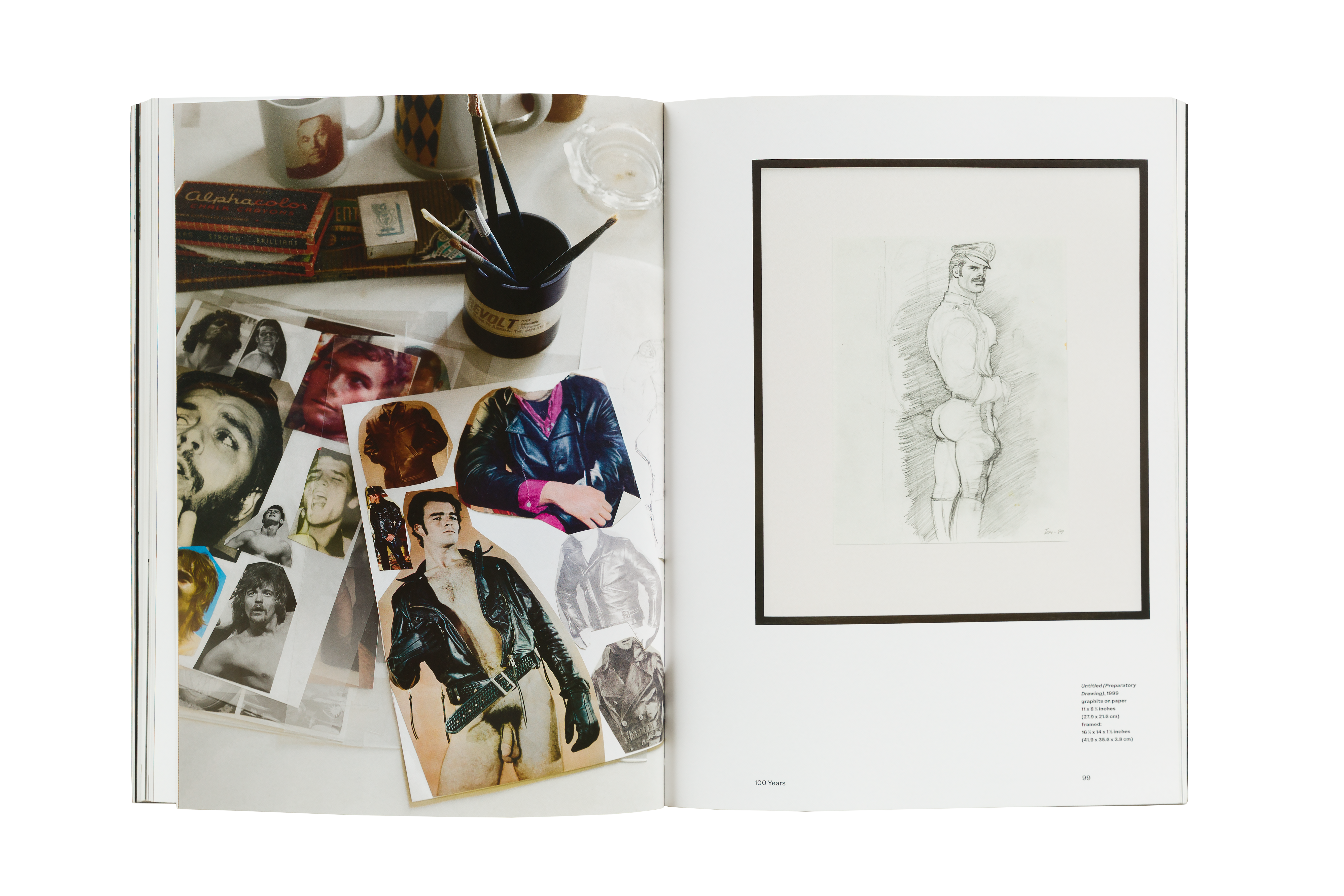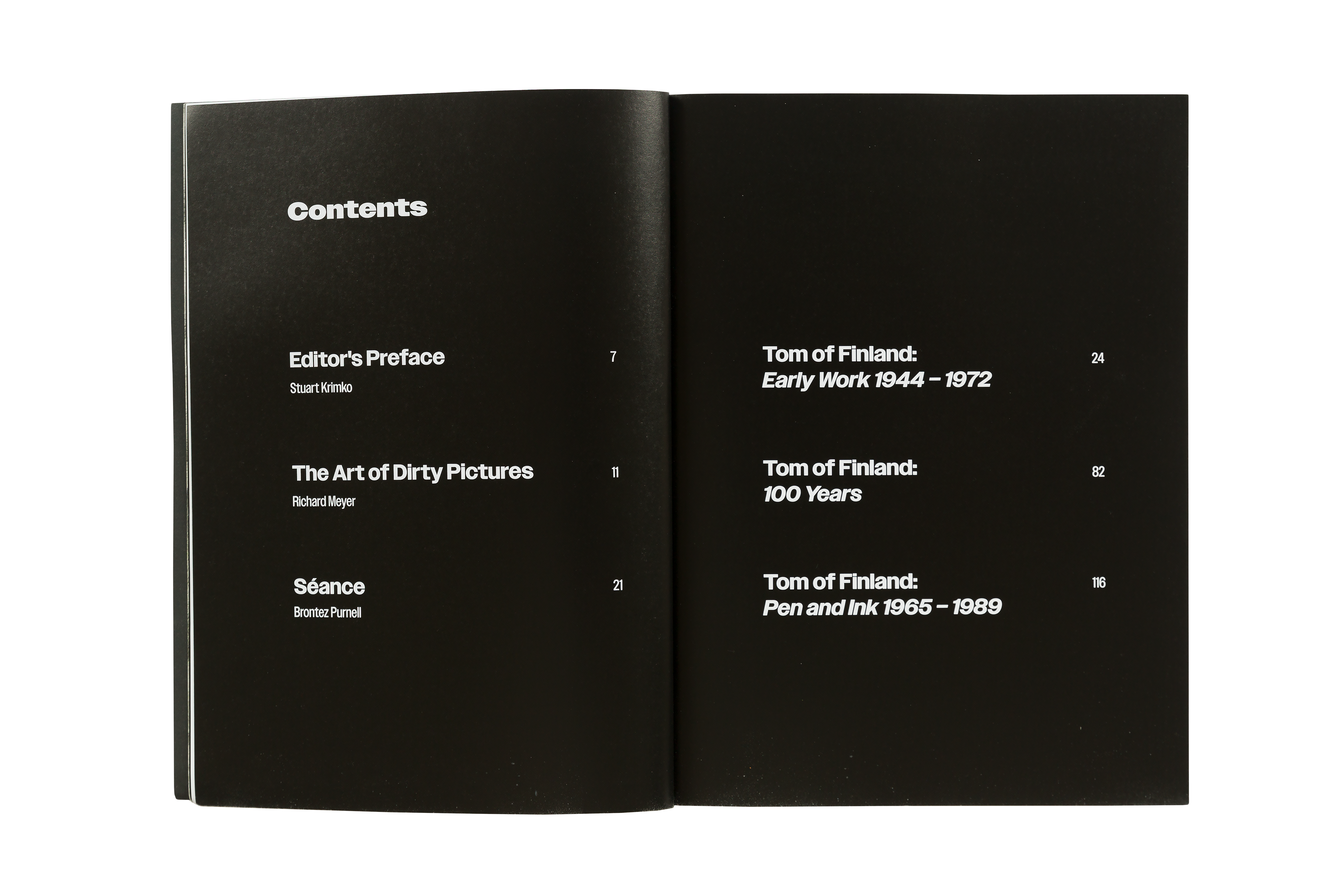 Over the arc of his life Tom of Finland made connections to the Los Angles queer, leather, BDSM, and art communities. With those connections in mind, Polymode designed the catalog using a typeface designed by Los Angeles-based Jeremy Mickel. The title, headings, and captions are set in Owners based the typeface on local hand-lettered signage he encountered while walking his dog in the Silver Lake neighbor, home to iconic sites of LA queer community: the Eagle LA leather bar and Tom of Finland Foundation.