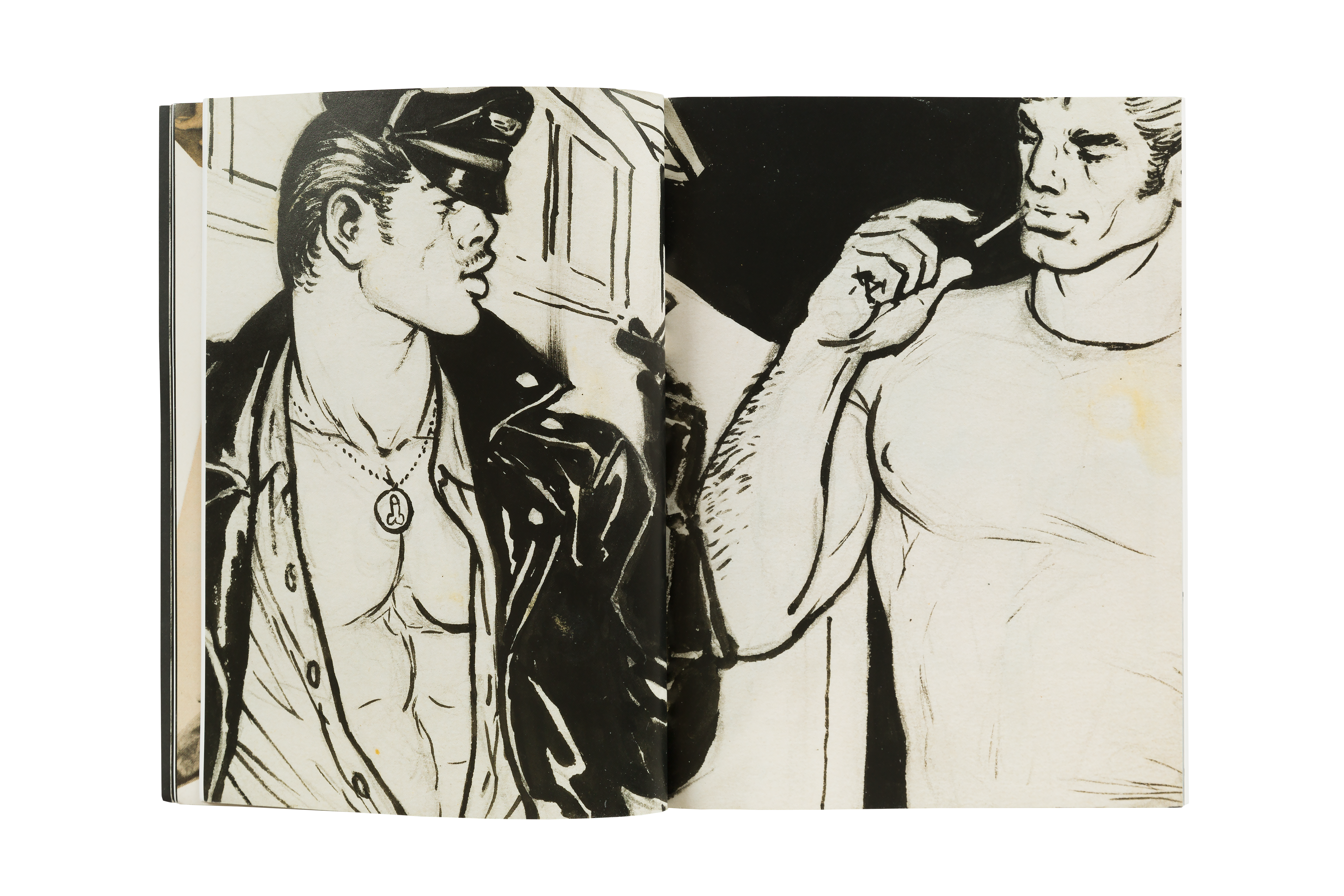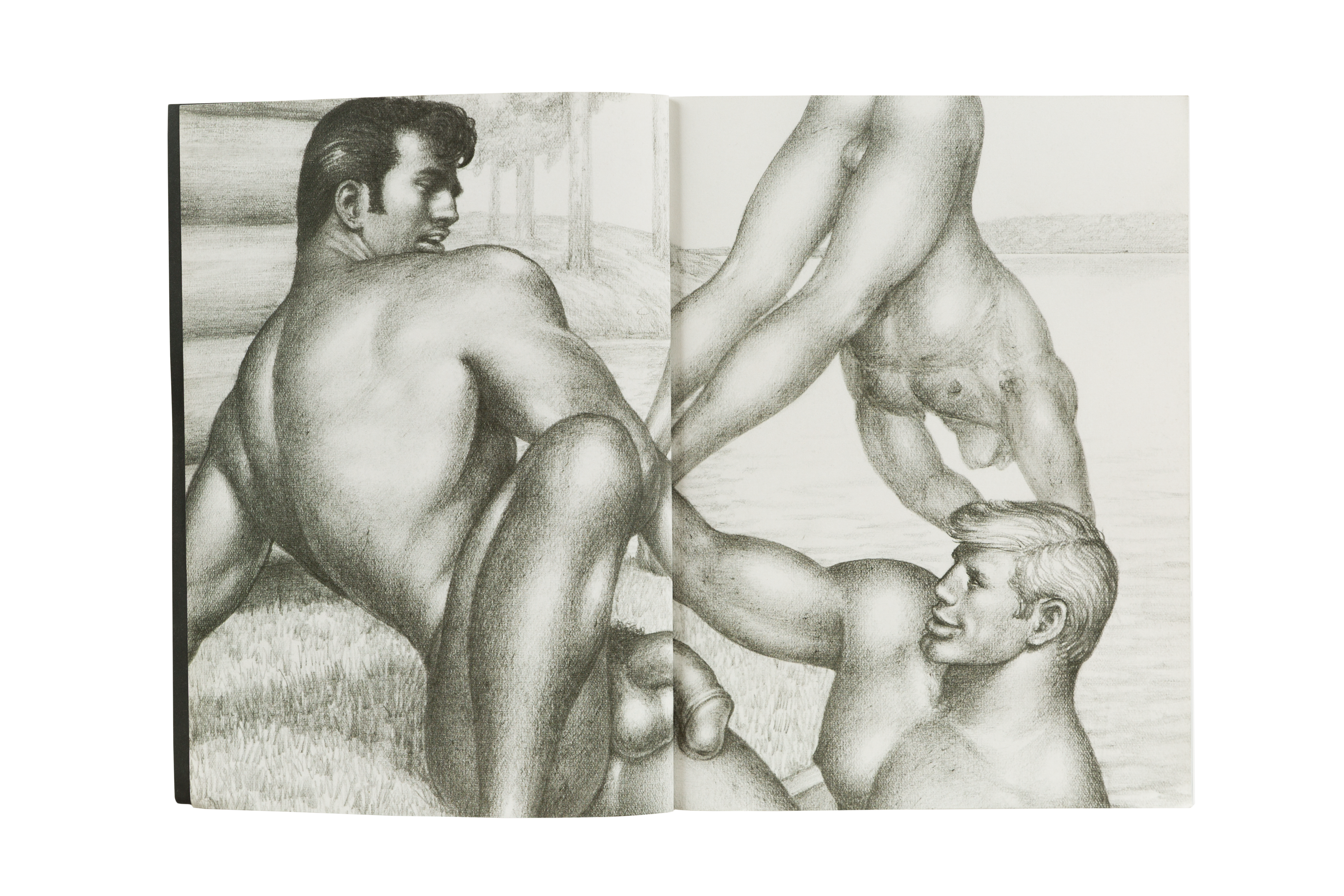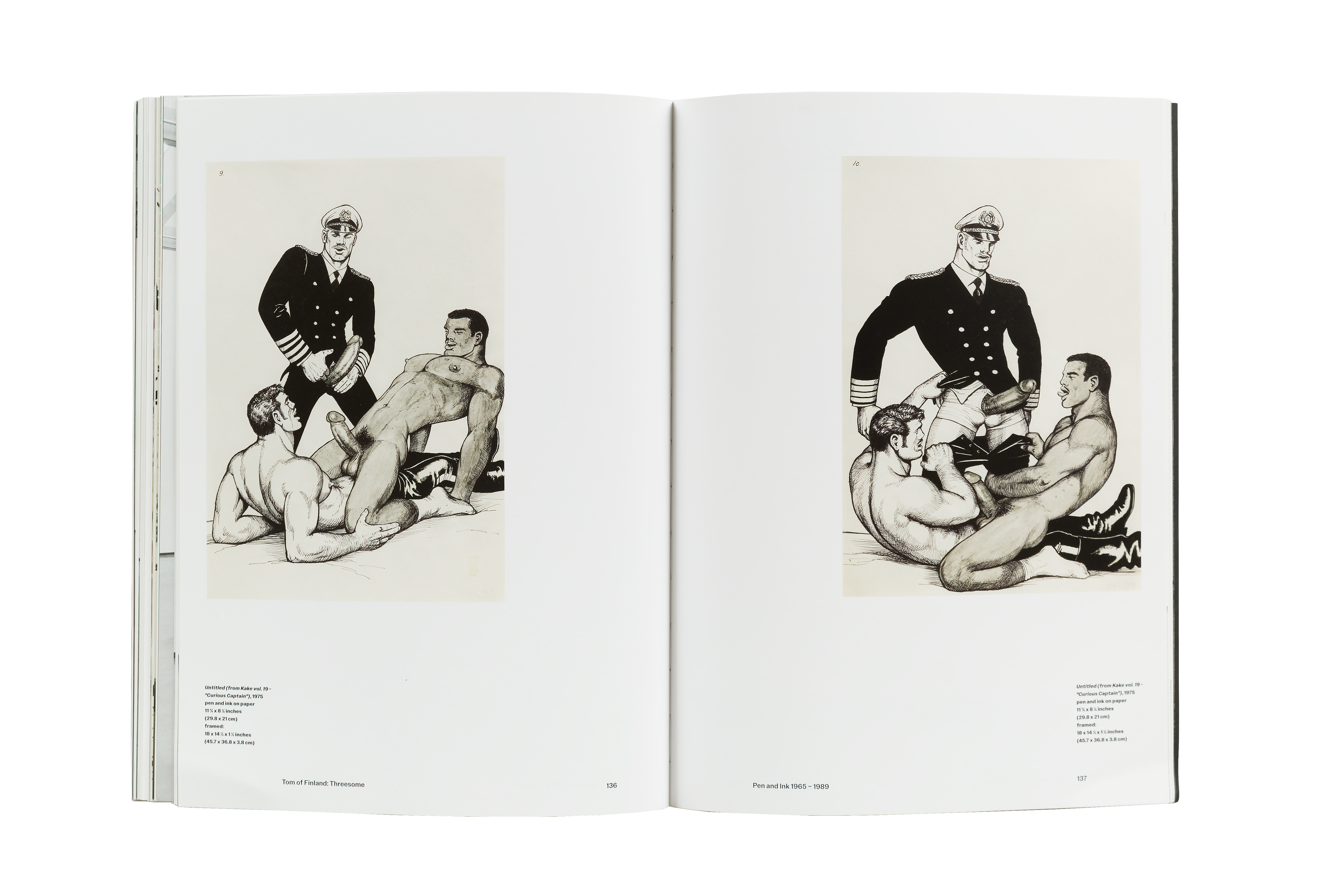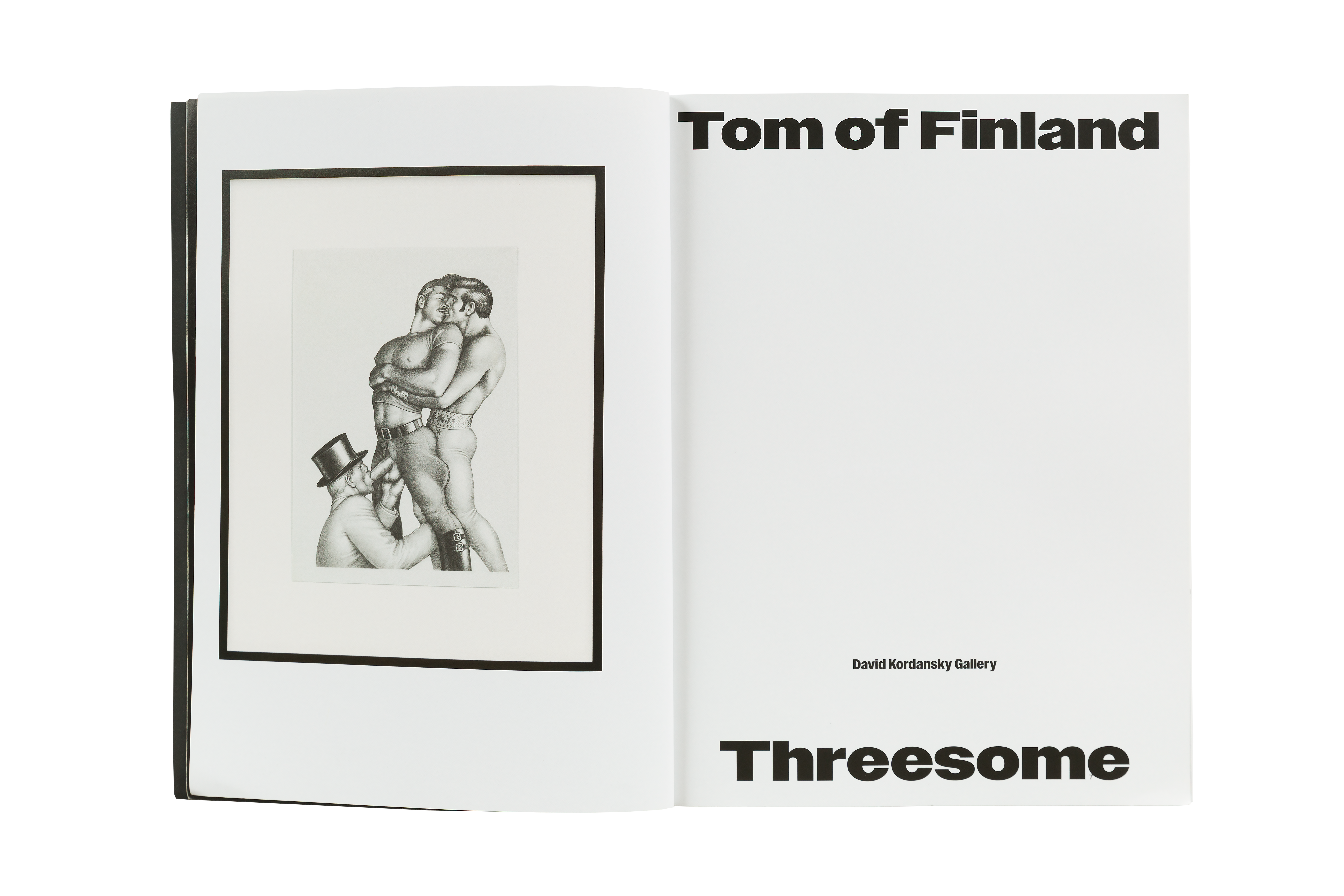 Tom of Finland: Threesome is a major new catalogue that documents three exhibitions held at David Kordansky Gallery between 2015 and 2021: Early Work 1944 – 1972, 100 Years, and Pen and Ink 1965 – 1989. The work featured in each of these three exhibitions highlights Tom’s technical virtuosity as well as his revolutionary spirit, while the exhibitions themselves reflect the ongoing collaboration between the gallery and the Tom of Finland Foundation. The publication includes essays by art historian Richard Meyer and artist and writer Brontez Purnell, alongside a preface by the book’s editor, Stuart Krimko. Together, these texts contextualize Tom’s work in an art historical framework, speak to Tom’s remarkable legacy and continued influence on artistic and queer communities, and underscore Tom’s development and devotion to his craft.