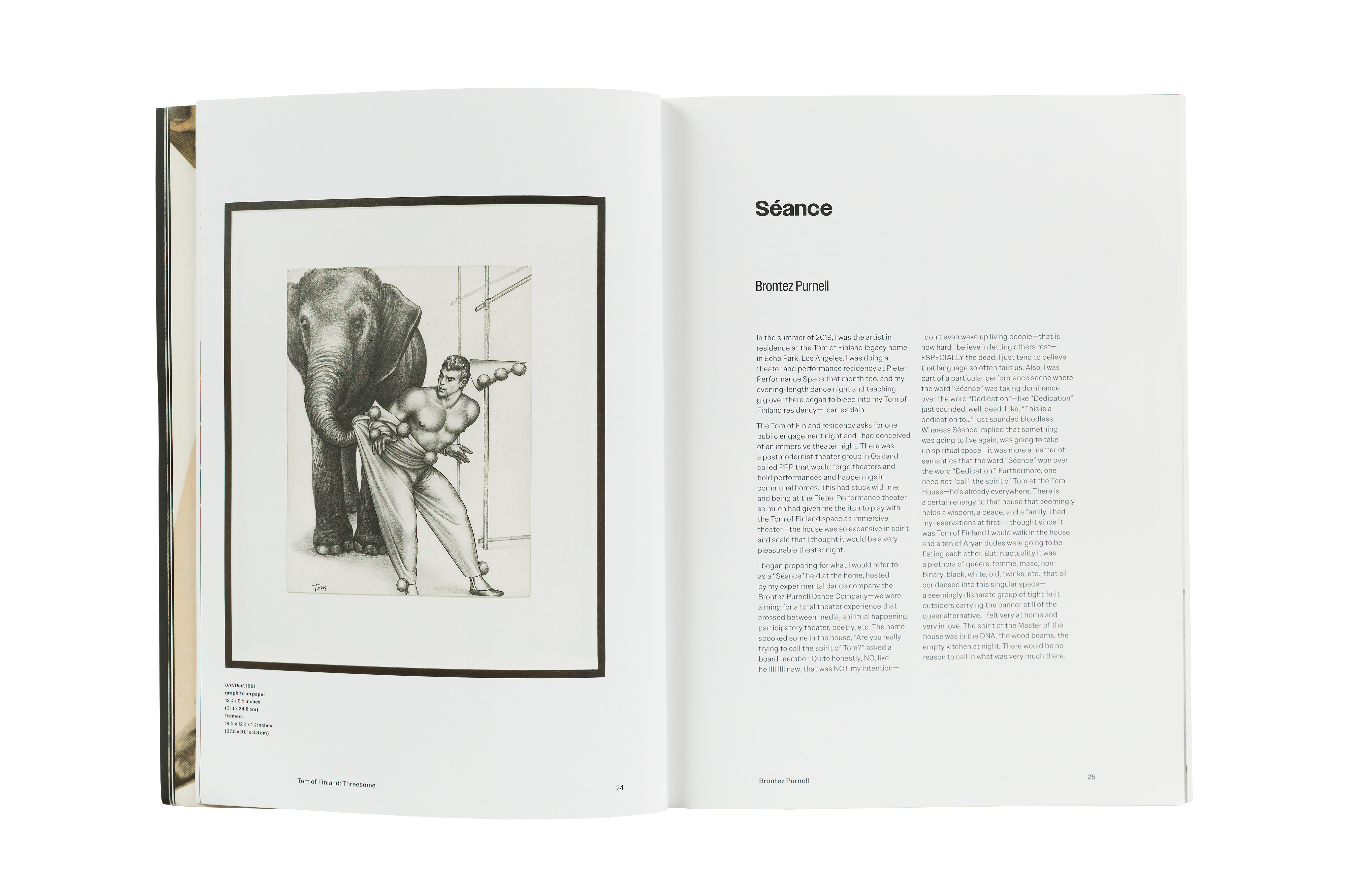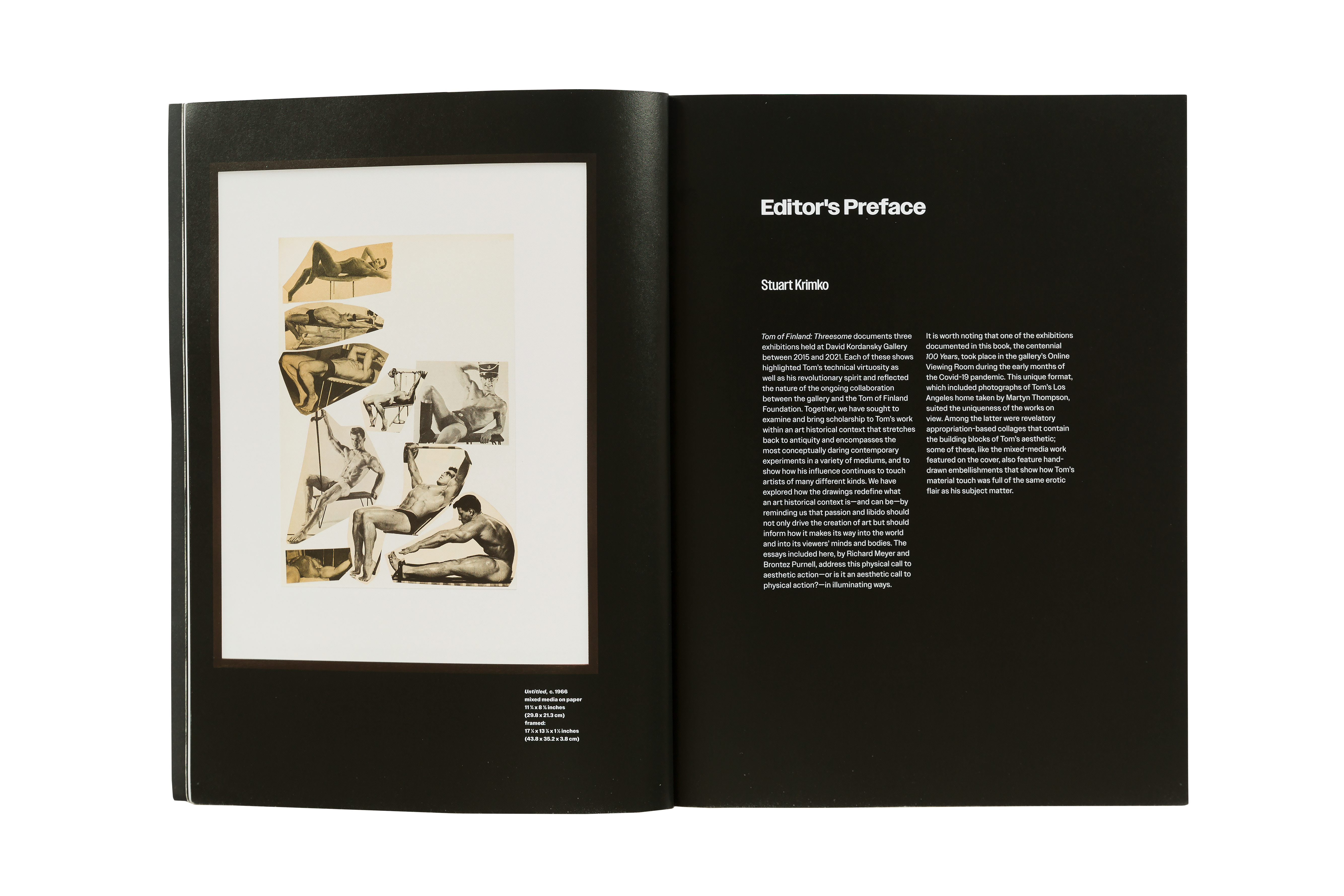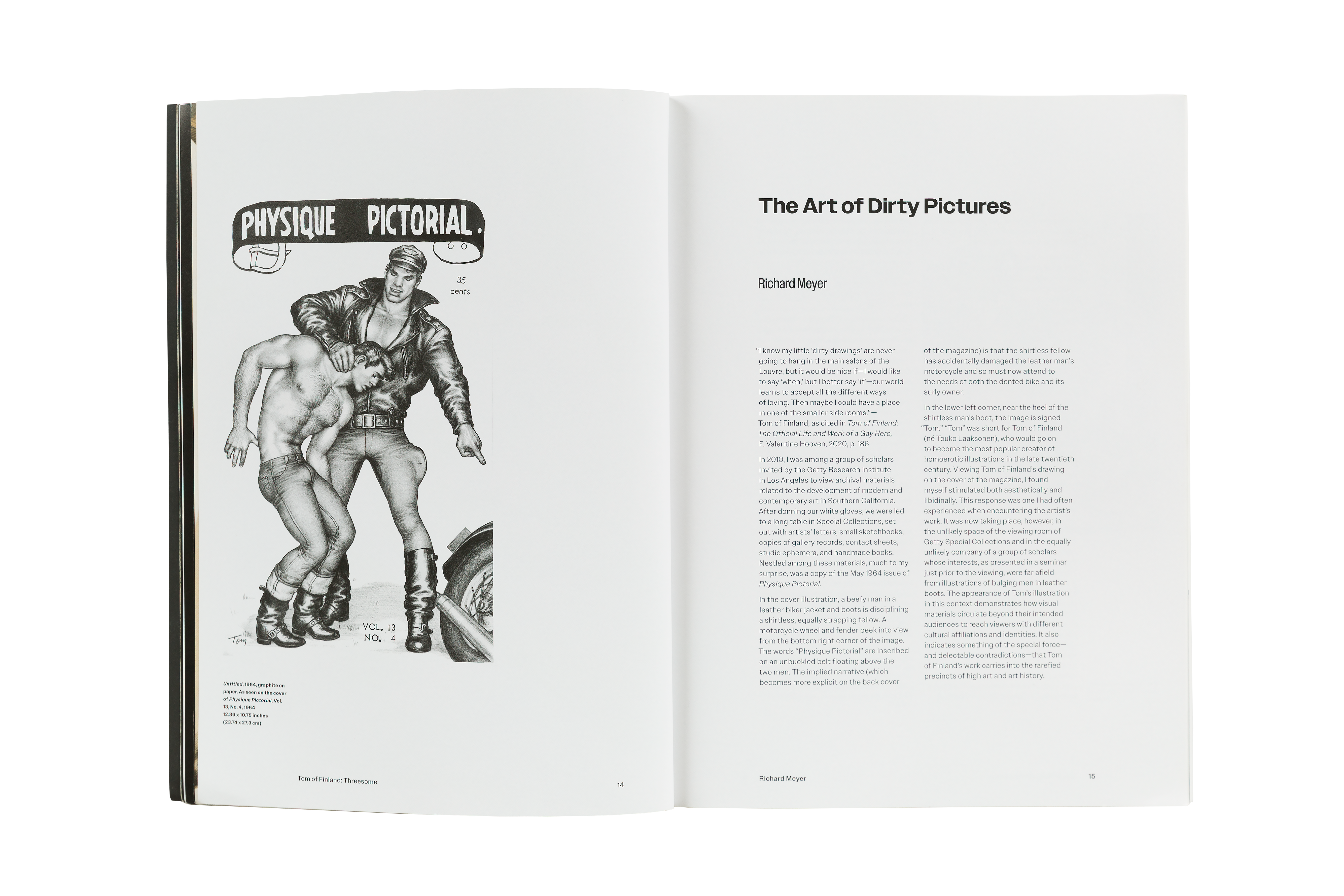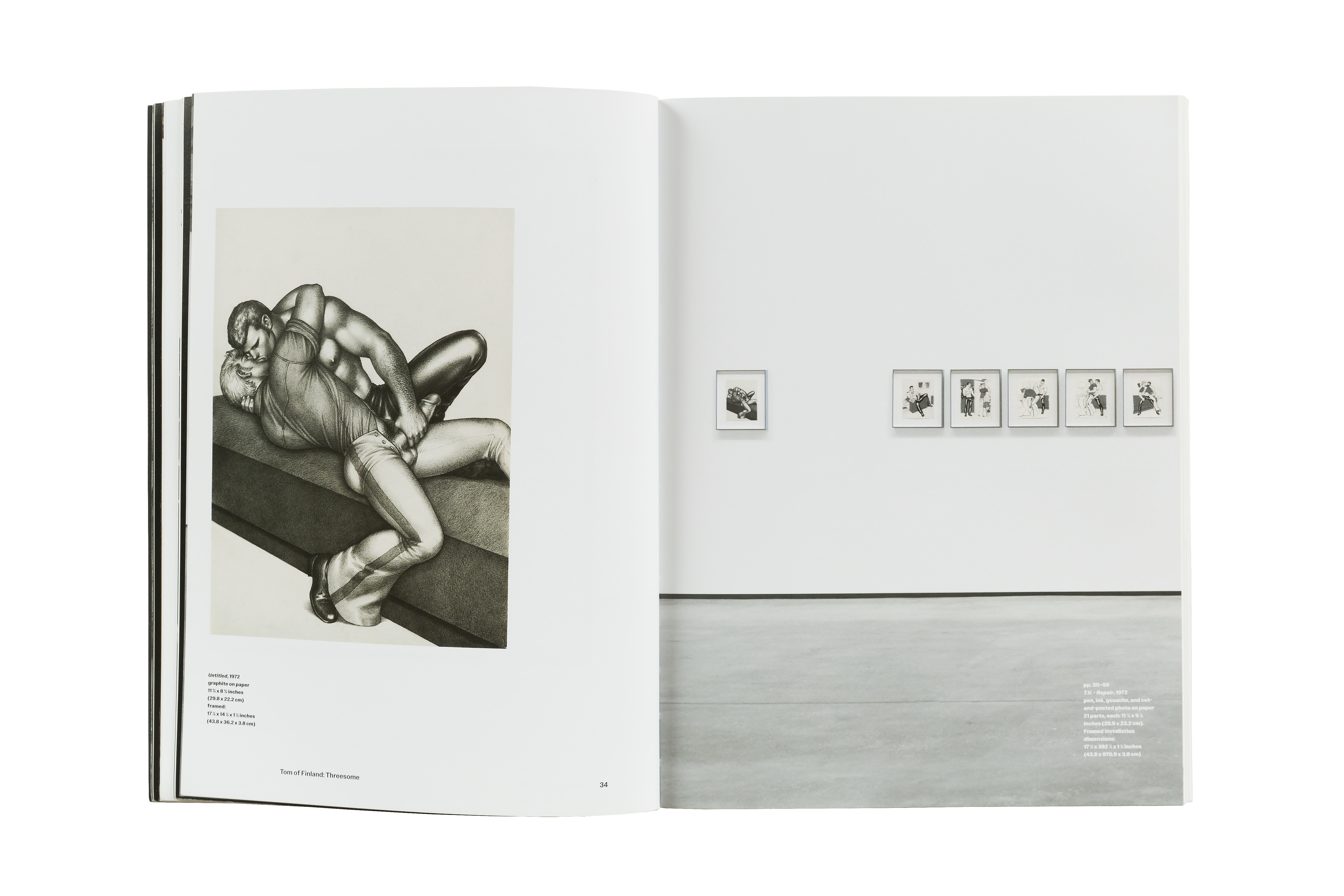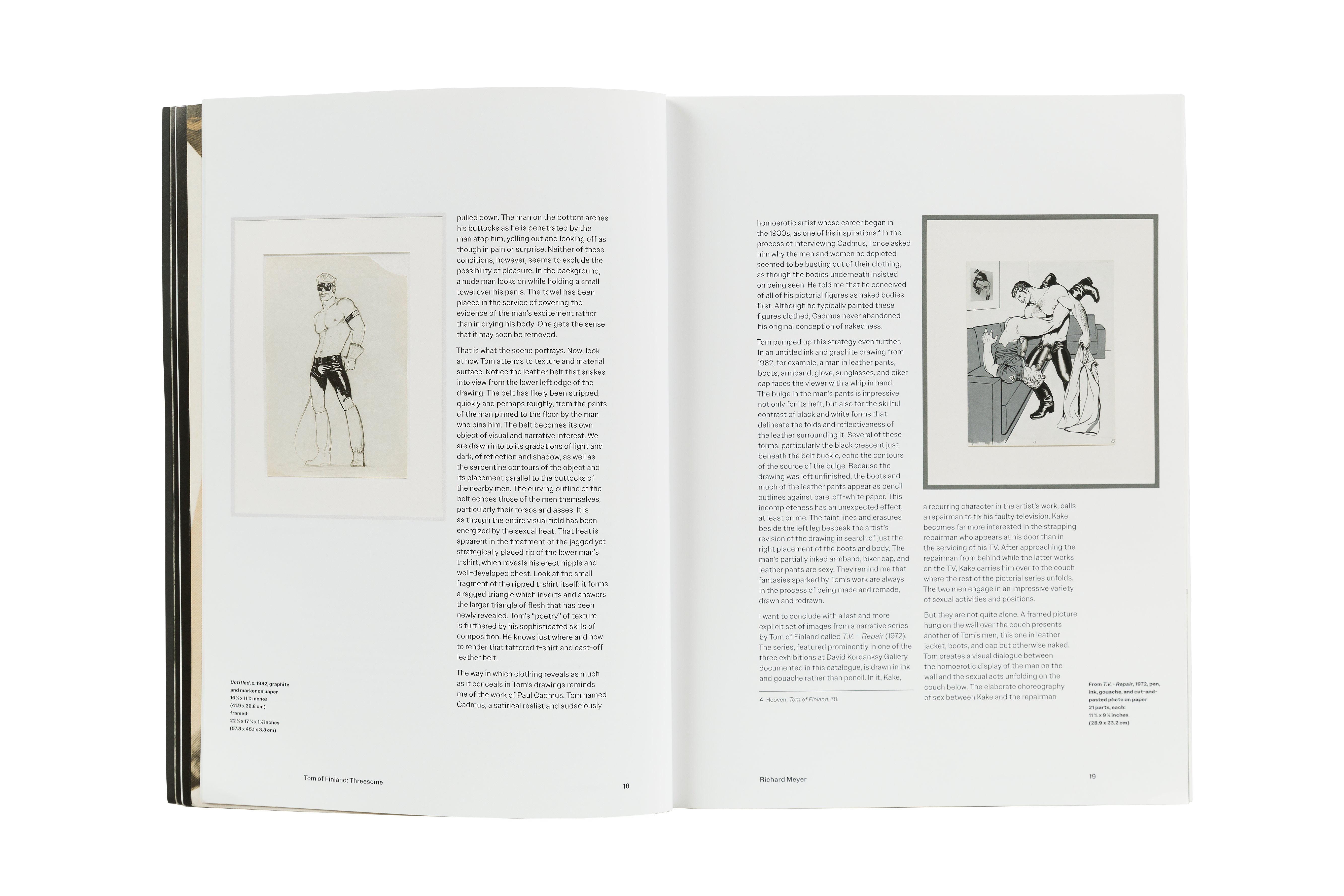 Tom of Finland: Threesome is a major new catalogue that documents three exhibitions held at David Kordansky Gallery between 2015 and 2021: Early Work 1944 – 1972, 100 Years, and Pen and Ink 1965 – 1989. The work featured in each of these three exhibitions highlights Tom’s technical virtuosity as well as his revolutionary spirit, while the exhibitions themselves reflect the ongoing collaboration between the gallery and the Tom of Finland Foundation. The publication includes essays by art historian Richard Meyer and artist and writer Brontez Purnell, alongside a preface by the book’s editor, Stuart Krimko. Together, these texts contextualize Tom’s work in an art historical framework, speak to Tom’s remarkable legacy and continued influence on artistic and queer communities, and underscore Tom’s development and devotion to his craft.